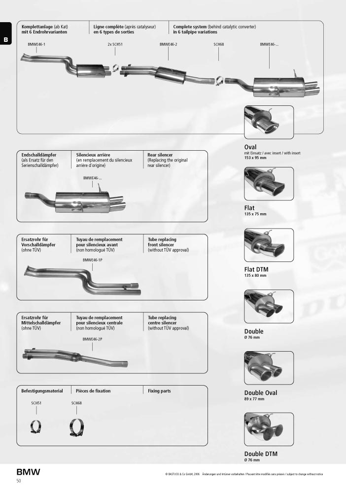Mobile Preview: Rear silencer with 2x76mm BMW E46 4Cyl all, 6Cyl. ->05/00
