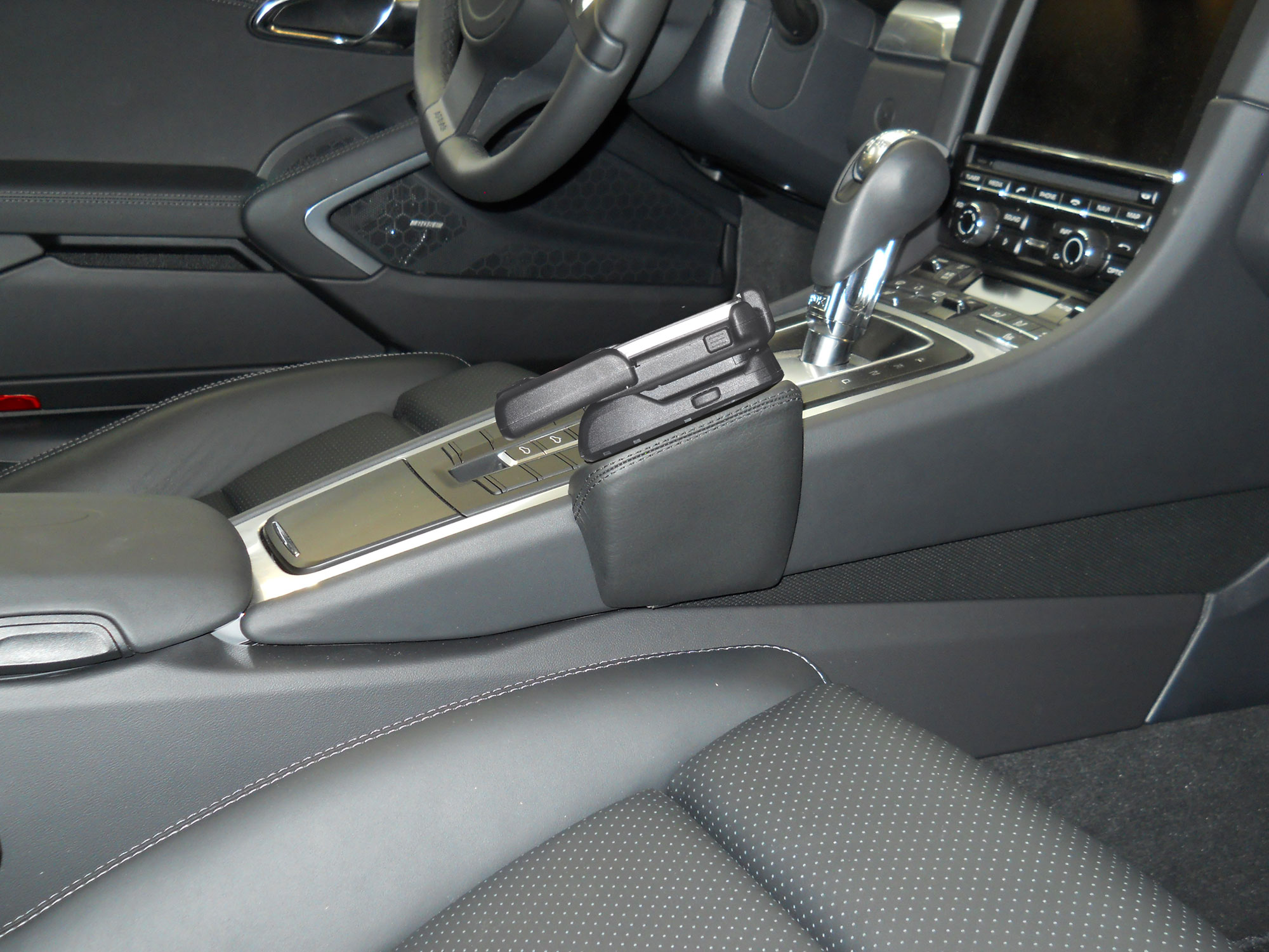 KUDA Handy console fit for Porsche 911 (991) from 11/2011 upto 2019 (7. Generation) & Porsche Boxster (981) from 2012 & Porsche Boxster (982) from 2016 & Porsche Cayman (981C) from 2013 & Porsche Cayman 718 (982C) from 2016 artificial leather black